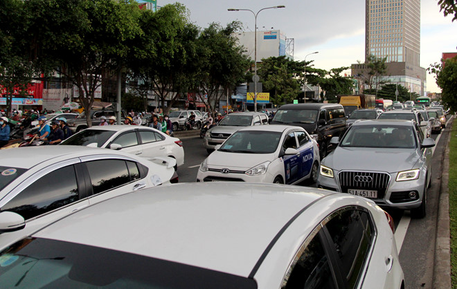 Xe cộ ùn ứ trên đường Điện Biên Phủ. Ảnh: Lê Trai.