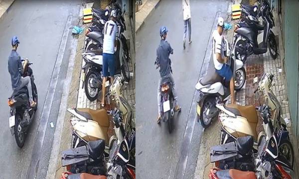 Đây là một câu chuyện có thực để cảnh báo với người dân vì chiêu cuỗm xe máy siêu nhanh. Trong khi một tên giả vờ nghe điện thoại, sau đó bẻ khoá chiếc xe rất nhanh rồi nổ máy tẩu thoát. Sự việc xảy ra nhanh chóng chỉ trong vòng 2 giây.