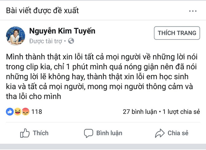 Cô giáo Tiếng Anh Nguyễn Kim Tuyến trở thành nhân vật "hot" nhất mạng xã hội chỉ sau một đêm. Hàng trăm tài khoản Facebook với tên cô được lập ra. Một số người còn chạy quảng cáo trang có tên cô với mục đích "phễu" tương tác.