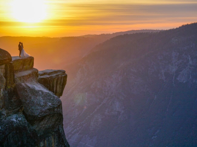 Cặp đôi chụp ảnh cưới với phong cảnh đẹp mê hồn trong vườn quốc gia Yosemite ở bang California, Mỹ.