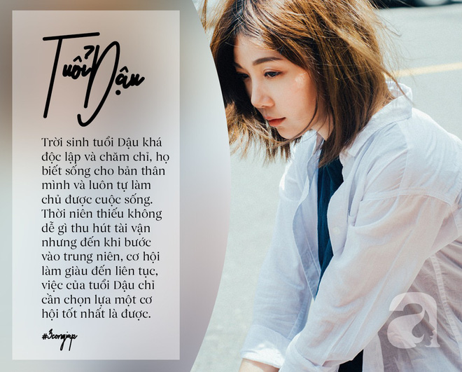 Trong tử vi học, những người tuổi Dậu được xem là giàu có và khá thành công. Có thể trong một hoàn cảnh nào đó, tuổi Dậu vẫn thấy mình không bằng ai nhưng xét cho cùng họ là những người không bao giờ phải lo nghĩ bất cứ điều gì. Trời sinh tuổi Dậu khá độc lập và chăm chỉ, họ biết sống cho bản thân mình và luôn tự làm chủ được cuộc sống.