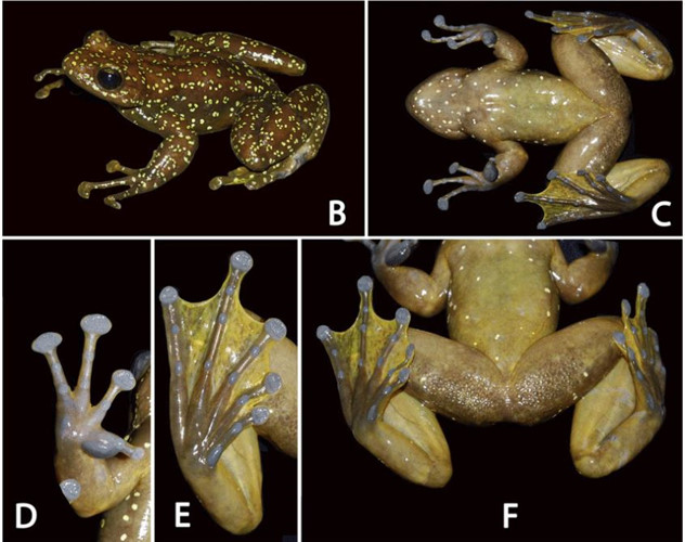Ếch bám đá đốm vàng sống ven các suối, thác ở vùng núi rừng nhiều tầng, cây lớn ở độ cao lớn so với mực nước biển. Ảnh researchgate.