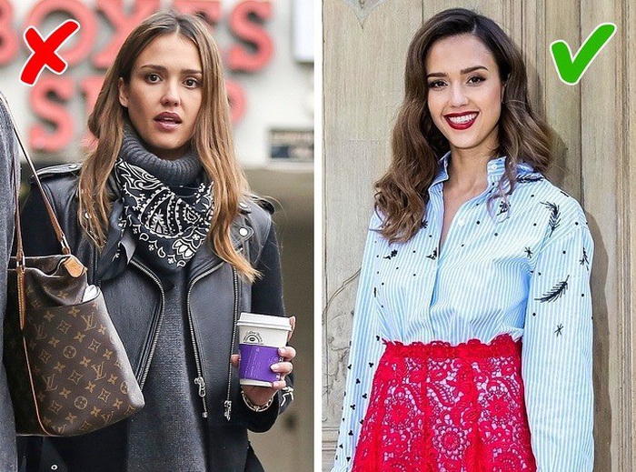 Lỗi ăn mặc này sẽ khiến làn da bạn dễ lộ hết vết nhăn hay đốm thâm mụn. Mặc đồ sáng màu sẽ làm cho khuôn mặt bạn sáng bừng.