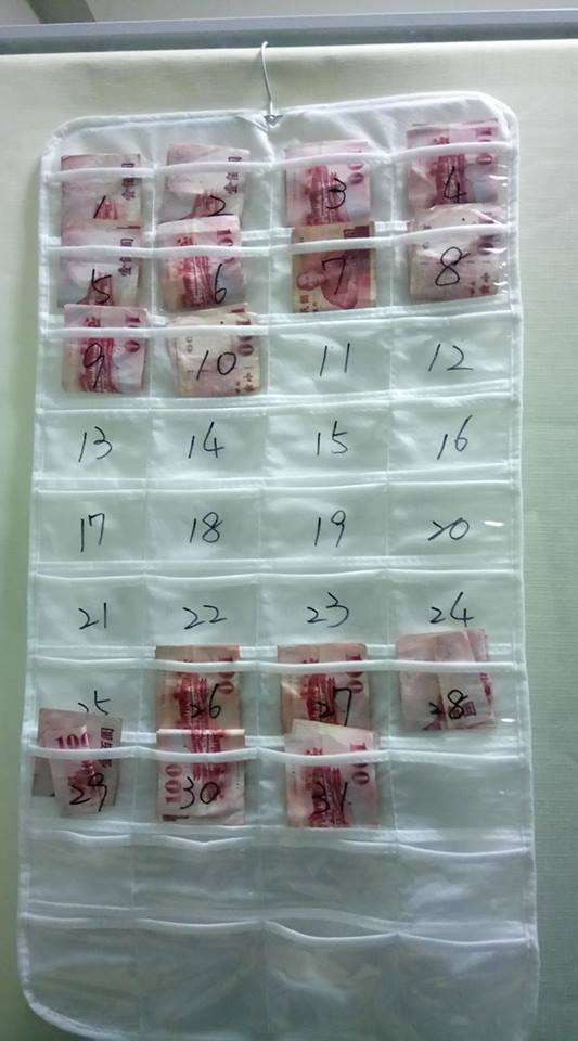 Trong bức ảnh được đăng tải là hình ảnh 1 chiếc túi có nhiều ngăn nhỏ, ở trên có đánh số tượng trưng cho 31 ngày trong tháng, mỗi ô sẽ được nhét 200 Đài tệ (khoảng 150.000 VNĐ), tương đương số tiền 1 ngày mà người vợ cho phép người chồng được quyền sử dụng.