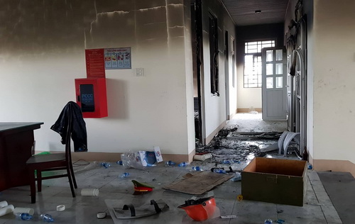 "Trước sự quá khích của hàng trăm người, chiều qua, lực lượng công an tại trụ sở Phòng cảnh sát PCCC đã phải rút. Đến đêm, hàng chục người tiếp tục tràn vào cơ quan này đốt ôtô, đập phá các phòng làm việc", ông Điển nói và cho biết, nhiều máy tính, thiết bị, vật dụng chữa cháy đã bị lấy đi.
