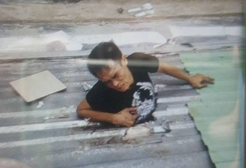 “Thanh niên này đục mái tôn để ăn trộm, tuy nhiên khi chui qua mái tôn thì bị kẹt lại, không thoát ra được bị người dân phát hiện”, đại diện UBND phường nói.