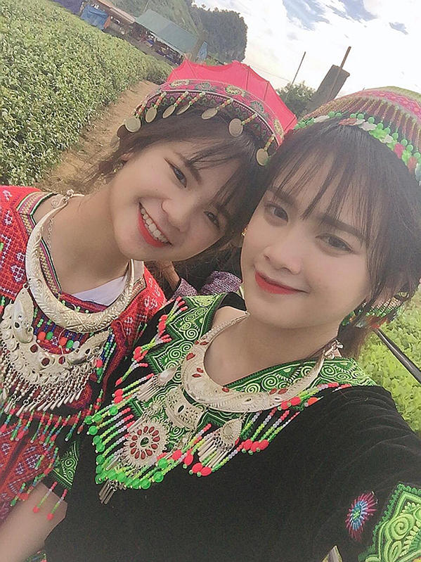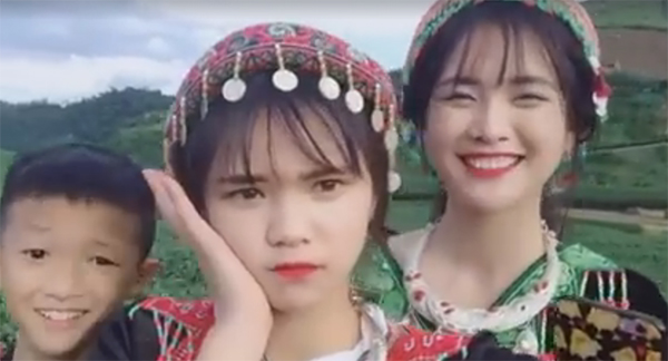 Cụ thể, đoạn clip ngắn 11s ghi lại cánh 2 cô gái với những biểu cảm hết sức đáng yêu trong trang phục người H’Mông. Khi cô em gái đang cầm điện thoại quay clip thì nhanh chóng xuất hiện cô chị mặc váy xanh. Tuy chỉ xuất hiện vài giây ngắn ngủi làm nền cho em gái nhưng với nụ cười rạng rỡ, 9X mặc trang phục váy xanh đã khiến biết bao trái tim loạn nhịp.