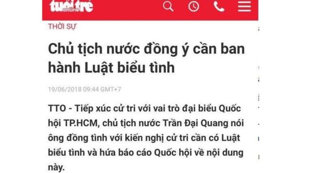 Old  Default Báo chí CSVN đồng loạt cắt bỏ tuyên bố ủng hộ Luật biểu tình của Chủ tịch nước Trần Đại Quang