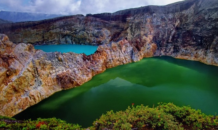 Một núi lửa cótới 3 cái hồ từng là miệng núi lửa với các màu sắc khác nhau. Nước của các hồ có màu đỏ, xanh lá cây hoặc xanh dương và được thay đổi liên tục. Những màu sắc này có được do do khói đến từ núi lửa và gây ra phản ứng hóa học. Người dân địa phương tin rằng các hồ là nơi an nghỉ cho tổ tiên họ. Theo truyền thống địa phương, màu nước tương ứng với tâm trạng của tinh thần. Người ta không bao giờ có thể dự đoán màu sắc của hồ, vì đôi khi chúng thay đổi thành màu trắng và đen.