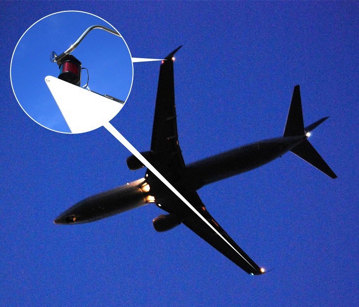 Thật ra những chiếc đèn ở chóp cánh máy bay này (cùng một số đèn điều hướng khác) có mục đích tránh va chạm giữa các máy bay mà thôi.