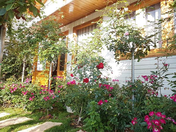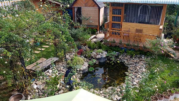 Mỗi sáng thức dậy, các thành viên trong gia đình cũng như những người khách tới chơi, trọ qua đêm đều có thể nhìn thấy màu xanh cây lá, màu sắc rực rỡ của những đóa hoa.
