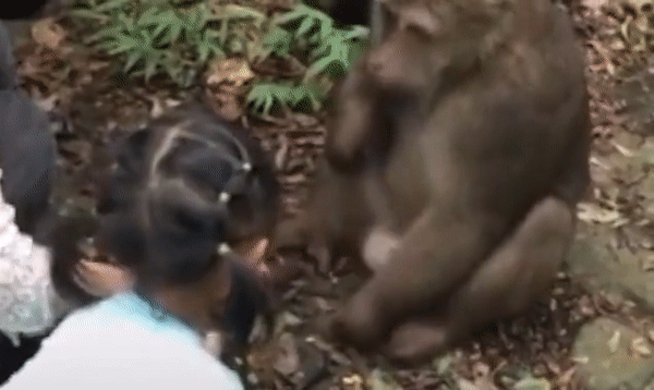 Sự cố xảy ra trong một vườn thú ở Trung Quốc. Trước thời điểm xảy ra vụ việc, một bé gái khoảng 3 tuổi đi chơi sở thú cùng mẹ. Tại đây, hai mẹ con cùng quỳ gối cạnh chú khỉ và đút đồ ăn cho nó.