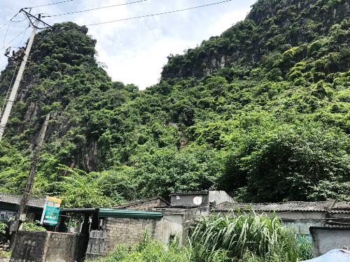 Khu vực núi đá bị lở rơi xuống khu dân cư bên dưới.