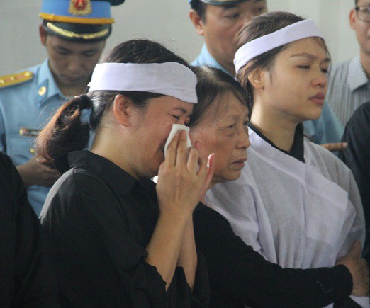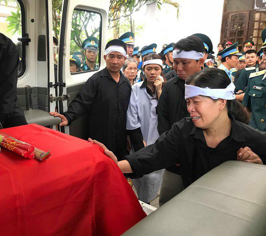 Người thân của 2 phi công không cầm được nước mặt tại lễ viếng