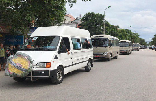 Đoàn xe xếp hàng dài đưa thi hài 2 phi công vê quê an táng.