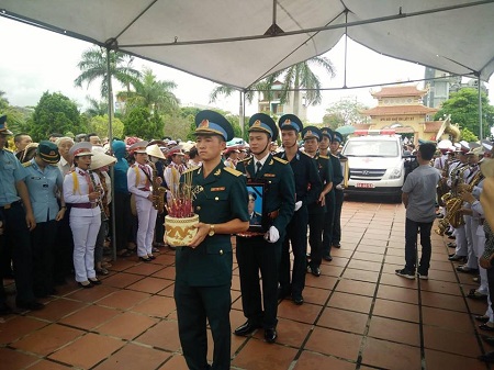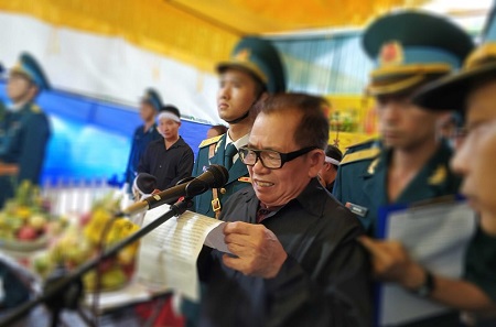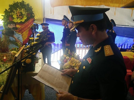 Đúng 14h, Đại tá Hoàng Trung Kiên, Phó Chính uỷ Sư đoàn 371, Quân chủng Phòng không – Không quân, thay mặt Ban Tổ chức lễ tang đọc lời ai điếu bày tỏ lòng tiếc thương với người đồng đội đã khuất.
