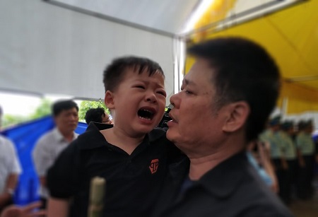 Bé Mích con trai nhỏ của Đại tá Nam gào khóc thảm thiết. Ảnh: Pháp Luật TP HCM