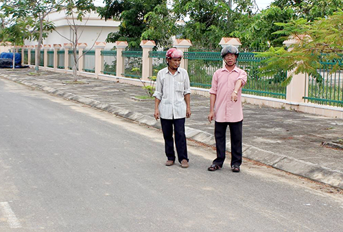 Ông Truyền (bên phải) chỉ nơi bị hai thanh niên tấn công. Ảnh: An Phước.