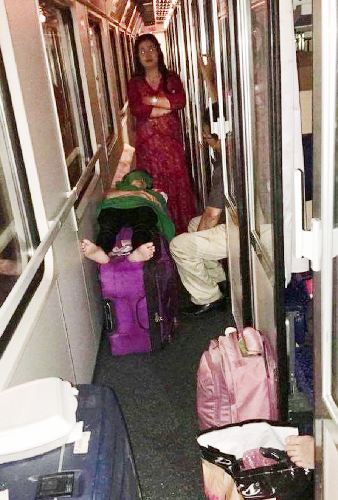 Đoàn khách đi tàu chợ mất gần 17 giờ từ Munich (Đức) đến Milan (Italy), 6 người trong một khoang 4m2 chật hẹp nên nhiều người phải ra hành lang tàu gần nhà vệ sinh nằm ngủ.