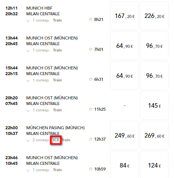 Không có tàu cao tốc ICE chạy thẳng nên phải đổi xe 1 hay 2 lần, và lẹ nhứt củng hơn 6 tiếng rưởi