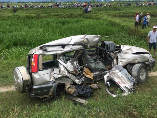 Tại hiện trường, chiếc xe ô tô nát bét, bên trong có 4 người bị mắc kẹt. Sau đó, người dân địa phương đến cạy cửa, đưa cả 4 người ra ngoài để cấp cứu nhưng 2 người đã thiệt mạng.