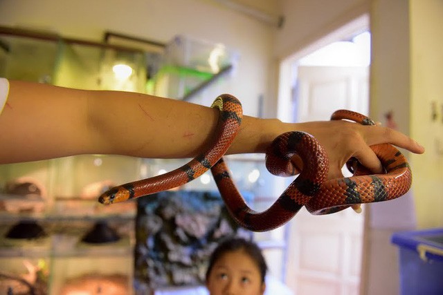 Theo Việt Anh, loài bò sát này nhìn bề ngoài có vẻ hung dữ nhưng thực chất đây đều là các loại rắn, trăn cảnh đã được thuần hóa, không có độc nên rất hiền. Đa số các loại vật nuôi này đều được kiểm dịch và có giấy tờ, nguồn gốc cụ thể.