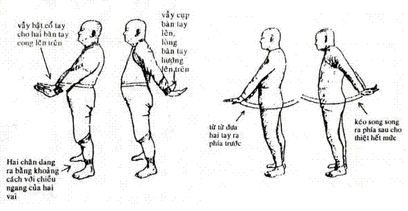 b. Hai tay duỗi thẳng theo vai, ngón tay x̣e thẳng, ḷng bàn tay quay về phía sau.