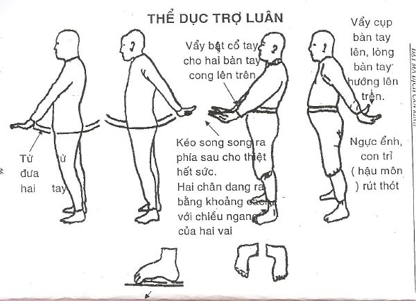 f. Dùng sức vẫy tay về phía sau, để hai tay trở hai phía trước theo quán tính, tuyện đối không dùng sức, chân vẫn lấy ân, hậu môn co lên không ḷi.