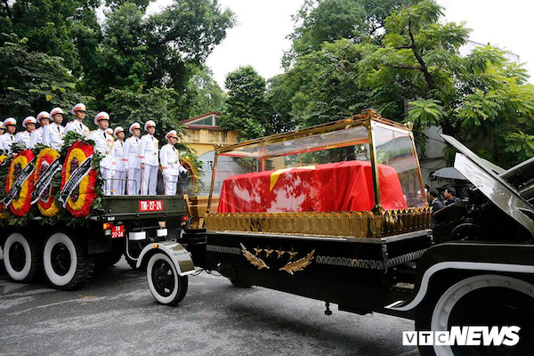 Đoàn xe rời khỏi nhà tang lễ, đưa linh cữu Chủ tịch nước về quê nhà Ninh Bình.