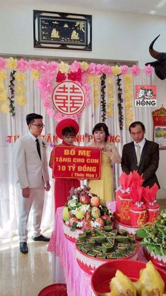 Theo phong tục VN vào lễ cưới thì cô dâu và chú rể thường được người thân tặng quà dưới nhiều hình thức. Nhưng với cặp đôi này thì lại nhận 10 tỷ theo 1 cách chơi trội và quá lố từ bố mẹ. Vụ việc ngay sau đó nhận khá nhiều sự chỉ trích của dư luận. Đám cưới là chuyện trọng đại nhất của đời người, bởi vậy ai ai cũng cố hết sức, làm mọi cách để ngày lễ này trở nên đáng nhớ nhất.