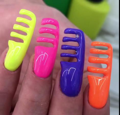 Tiệm làm móng Nail Sunny đến từ Moscow, Nga mới đây đã tung ra phương pháp làm đẹp móng tay kiểu mới trên trang Instagram của mình. Trong đoạn video được chia sẻ trực tuyến, người ta có thể thấy thợ làm móng gắn tóc giả lên móng tay và còn dùng chổi mascara, máy duỗi để tạo kiểu.