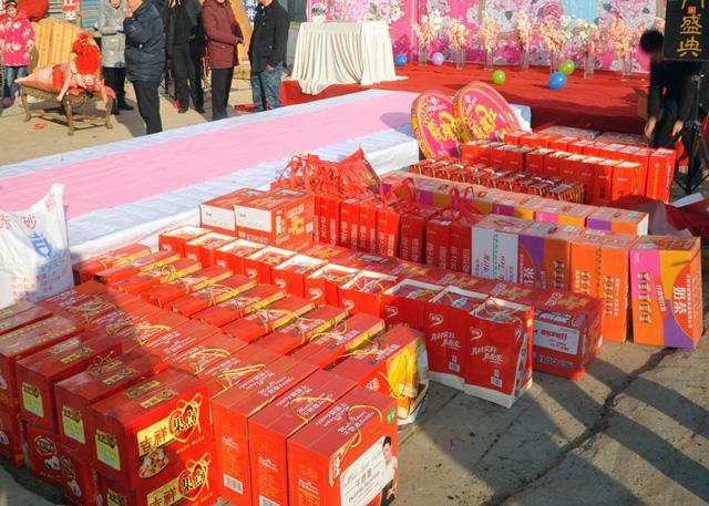 Ngoài ra, bộ sính lễ còn có 100 kg đường cát trắng, 100 kg gạo, 4 hũ rượu, một con lợn ngậm 2.000 nhân dân tệ (hơn 6,7 triệu đồng), một cái đùi gà đi kèm 700 nhân dân tệ (hơn 2,3 triệu đồng), một con cá miệng ngậm 300 tệ (hơn 1 triệu đồng) và nhiều thùng mì ăn liền. Theo trang QQ, một chiếc xe tải nhỏ còn chưa thể chở hết số lễ vật này.