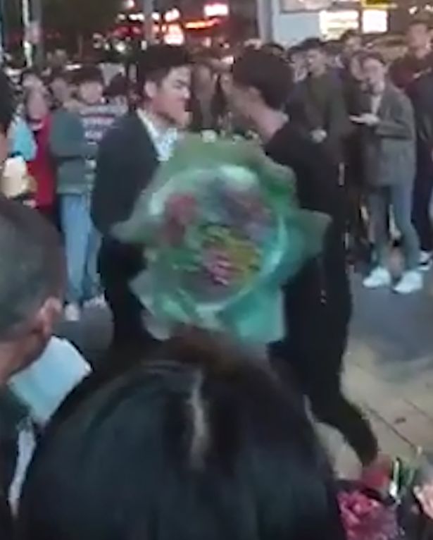 Đám đông xung quanh đã hét hai chàng trai dừng lại và chạy vào can ngăn họ đánh nhau. Nhưng họ vẫn tiếp tục xô xát vài phút cho tới khi đoạn video kết thúc và Xiao Ai dường như không nhận lời cầu hôn của cả hai chàng trai.