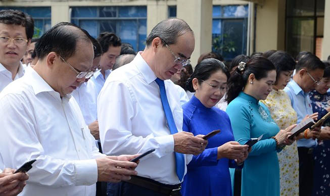 Được biết cảnh nhắn tin tặng tiền tập thể diễn ra sáng ngày 15 tháng 10, ngay sau lễ chào cờ của các quan chức thành phố. Đứng trong hàng ngũ quan chức cùng bấm điện thoại, người ta thấy có ông Nguyễn Thiện Nhân, bí thư thành ủy, ông Tất Thành Cang, phó bí thư thường trực thành ủy, bà Võ Thị Dung, phó bí thư thành ủy, ông Nguyễn Văn Hiếu, chủ nhiệm ủy ban kiểm tra thành ủy. Theo báo chí nhà nước, họ hưởng ứng lời kêu gọi của ủy ban mặt trận tổ quốc thành phố ủng hộ Quỹ Vì Người Nghèo trong dịp Tết Nguyên Đán Kỷ Hợi 2019. Được biết, với mỗi tin nhắn gửi đi, người nhắn tin đóng góp 20,000 đồng, khoảng 89 xu Mỹ, cho Quỹ Vì Người Nghèo. Người nhắn tin có thể nhắn bao nhiêu lần cũng được.