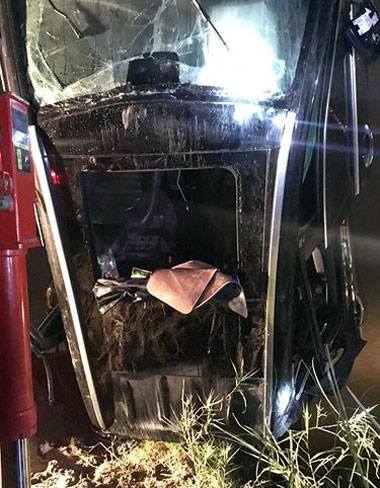 Theo quan sát, đầu chiếc xe dập nát, biến dạng, cửa nóc mở toang. Biển số và đuôi xe bị hư hỏng.