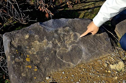 Trong hai ngày 26 và 30 tháng 10 vừa qua, nhân viên khu di tích đã tìm thấy chữ Nhật Bản và chữ Latin viết nguệch ngoạc trên các bức tường. Nổi bật trong số đó là chữ “HÀO” có kích thước khoảng 60 cm, cùng những hình vẽ ngôi sao và trái tim xung quanh được khắc trên bệ đá nằm ở vị trí cao nhất trong khu di tích. Các báo Nhật Bản chỉ nói “đó là ba mẫu tự Latin H-A-O”, nhưng dựa vào ảnh chụp tảng đá, nhiều người nhận ra đây có thể là tên của người viết bậy và người này là một người Việt Nam.