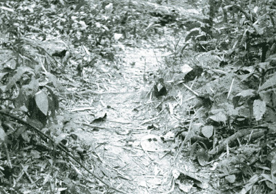 Buổi sáng sau khi báo cáo với FAC trong đêm an toàn, chúng tôi bàn với nhau: Qua phát hiện trong 2 ngày nay, chắc chắn tuyến đường xâm nhập vào vùng Tam Biên phải ở gần đây. Tuyến đường này gần như nằm song song với trục tiến quân của chúng tôi. Có thể là hướng Bắc của con suối hay nằm ở phía Nam con suối. Tôi quyết định đổi hướng và toán di chuyển về hướng Bắc, không tiến vào mục tiêu như đă dự trù. Tôi liên lạc với FAC cho biết ư định mới của toán và chiếu gương xin FAC xác nhận vị trí điểm đứng của toán. FAC cho tọa độ hiện tại của toán, so với tọa độ chúng tôi xác định th́ chỉ cách nhau không qúa 100 thước. Chúng tôi tiến về hướng bắc di chuyển khoăng 200 thước; toán phát giác một đường ṃn nhỏ bề ngang khoăng hơn một thước láng, sạch, không có một cọng cỏ. Theo kinh nghiệm th́ đường ṃn như thế này phải được sử dụng hàng ngày rồi. Tôi bước dọc theo lề đường khoảng 10 thước, nh́n về phía Tây khoảng 100 thước th́ bị che khuất. Có lẽ đó là khúc quanh mà con đường chạy theo đoạn cong của ḍng suối.