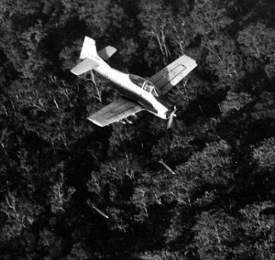 Hết khu trục A1-E rồi phản lực F4-C thay phiên nhau quần thảo phía Bắc con suối, cách chỗ chúng tôi khoảng 50-60 thước. Tiếng bom, tiếng đạn và tiếng la vang từng chập. Tiếng bom đạn vừa ngừng là bọn chúng lại chạy về hướng Đông của đường ṃn. Chưa bao giờ tôi thấy khu trục yểm trợ ngoạn mục như vậy. Nhiều tràng đại liên cài dọc theo con suối chỉ cách chúng tôi không qúa 50 thước. Tôi nghĩ chỉ cần một viên đạn ”bụi đời” bỏ đi bậy bạ là toán chúng tôi có người bỏ mạng rồi. Phi cơ đánh từ Đông sang Tây phía trước mặt chúng tôi. Hướng Bắc không nh́n thấy địch nhưng về hướng Tây trên một ngọn đồi thấp có nhiều tảng đá to, tôi thấy địch đang tập trung và ẩn nấp quanh mấy ḥn đá lớn lố nhố.