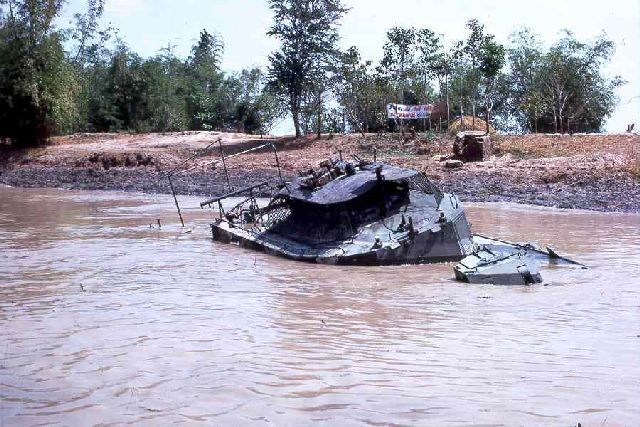 Ở bờ suối bên này chỉ có tôi, Meadows và thằng Dưỡng. Thằng Meadows gần như nằm hẳn xuống suối, từ thắt lưng trở xuống ngâm hẳn dưới nước suối. Nó để máy quay phim ghếch ống kính lên chờ quay. Tôi đứng rùn người, hơi nghiêng bên cạnh thân cây gỗ mục chờ chụp h́nh. Khoảng 15 phút sau, ở khúc quanh hướng Tây xuất hiện một toán khoảng chừng 15 tên, vượt qua chỗ chúng tôi đang núp với những bước chân sải thật dài. Cũng quân phục xanh, nón cối, giầy vải và dép râu lẫn lộn, lưng mang balô có vắt nhánh cây. Tên nào cũng chống một cây gậy nhưng không thấy mang vũ khí hay khiêng vác vật ǵ cả, khác với toán vừa vượt qua. Toán này tất cả đều sồn sồn khoảng 40-50 tuổi.