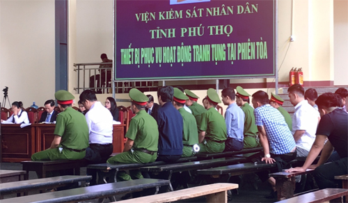 Lúc Dũng khai, các bị cáo Phan Văn Vĩnh, Phan Sào Nam chăm chú nghe.