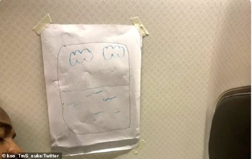 Hành khách ngồi cạnh không thể nhịn cười và chụp lại khung cửa làm bằng giấy này. Bài chia sẻ nhanh chóng thu hút hơn 15.300 lượt yêu thích, và 7.800 bình luận từ ngày 5/11.