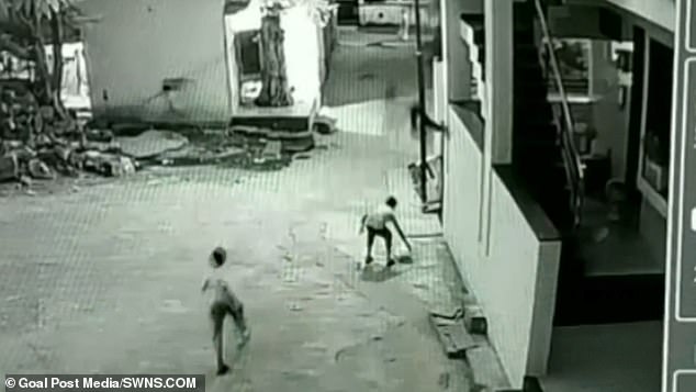 Video do camera an ninh ở tòa nhà gần đó ghi lại. Swati Jagre, mẹ của Swapnil nói: “Sau khi xem video, tôi chỉ còn biết nói ơn Chúa khi cả hai vẫn lành lặn”.