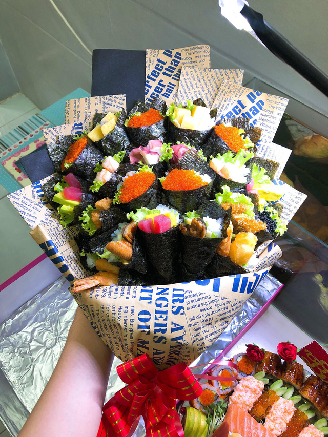 Bó hoa sushi có giá từ 2 triệu đồng trở lên. (Ảnh: Hồng Vân)