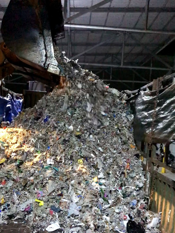 Sau khi làm thủ tục qua cửa, tài xế chạy xe đến khu vực tiếp nhận rác thải. Tại đây, chúng tôi chứng kiến những họng xả rác liên tục đùn ra đủ thứ, từ tro xỉ, rác hỗn hợp (thủy tinh, kim loại, bã giấy và các loại nilon...). Các xe nhận đầy rác liên tục rời khỏi nhà máy trực chỉ hướng TP.HCM.