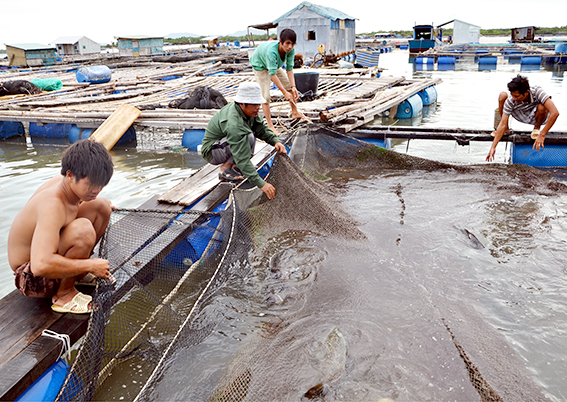 Tổ chức, hướng dẫn gia cố và thực hiện các biện pháp bảo đảm an toàn, giảm thiệt hại đối với lồng bè, khu vực nuôi trồng thủy, hải sản.