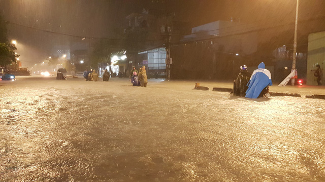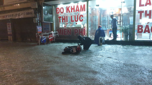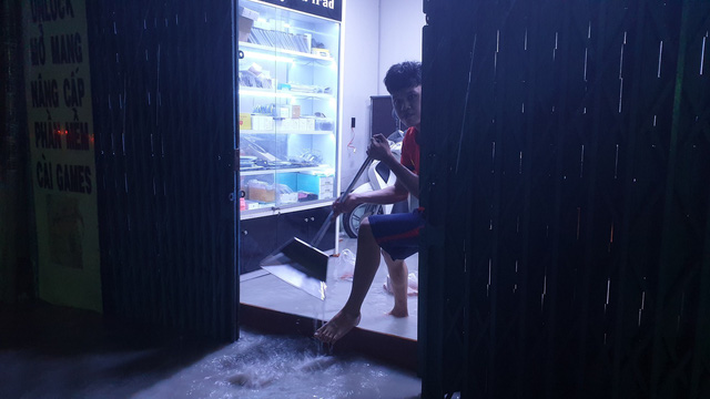 Đến 22h cùng ngày, nhiều người vẫn đang loay hoay giữa biển nước không biết chọn lối nào không bị ngập để về nhà khi bốn bề là nước.