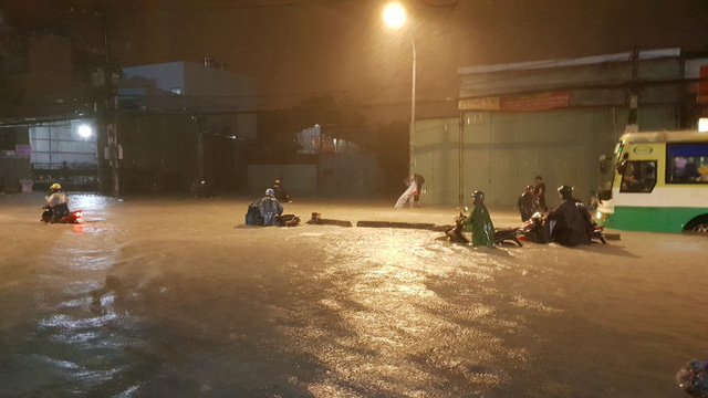 Hôm qua 25/11 là một ngày kinh hoàng đối với người Sài Gòn vì mưa lớn do ảnh hưởng của cơn bão số 9. Chiều tối 25/11, trên địa bàn TPHCM đã có mưa lớn kéo dài nhiều giờ. Mưa kết hợp với triều cường dâng cao đã gây nên cảnh ngập lụt kinh hoàng. Đến khuya 25/11, nhiều người dân vẫn loay hoay giữa biển nước và không tìm được tuyến đường khô ráo để di chuyển về nhà.