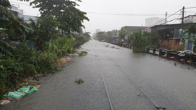 Đường sắt đoạn qua quận Thủ Đức ngập chìm trong nước