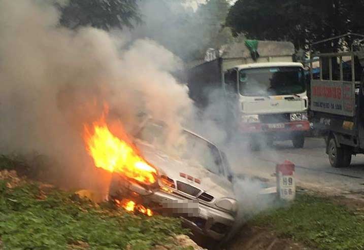 Theo người dân chứng kiến vụ tại nạn, chiều nay (30.11), chiếc xe ô tô 4 chỗ di chuyển trên QL2 theo hướng đi TP.Tuyên Quang. Khi đến Km 32 xã Thái Sơn, huyện Hàm Yên, tỉnh Tuyên Quang, xe bất ngờ mất lái lao xuống rãnh bên đường rồi bốc cháy dữ dội.