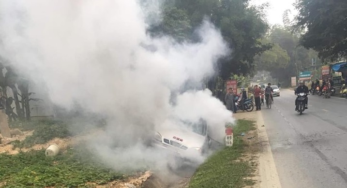 Tại thời điểm xe bốc cháy có 2 người trên xe. Rất may, cả hai đã kịp thoát ra ngoài an toàn.